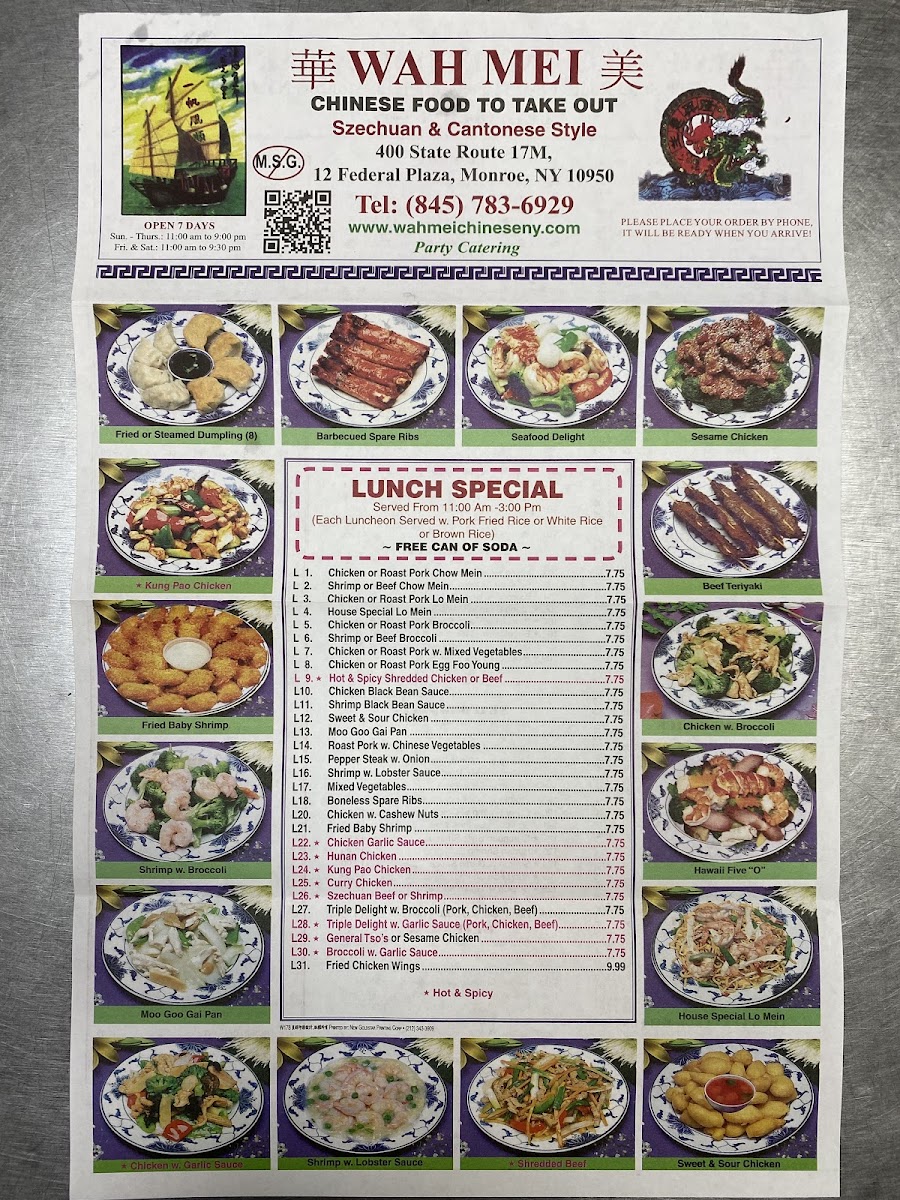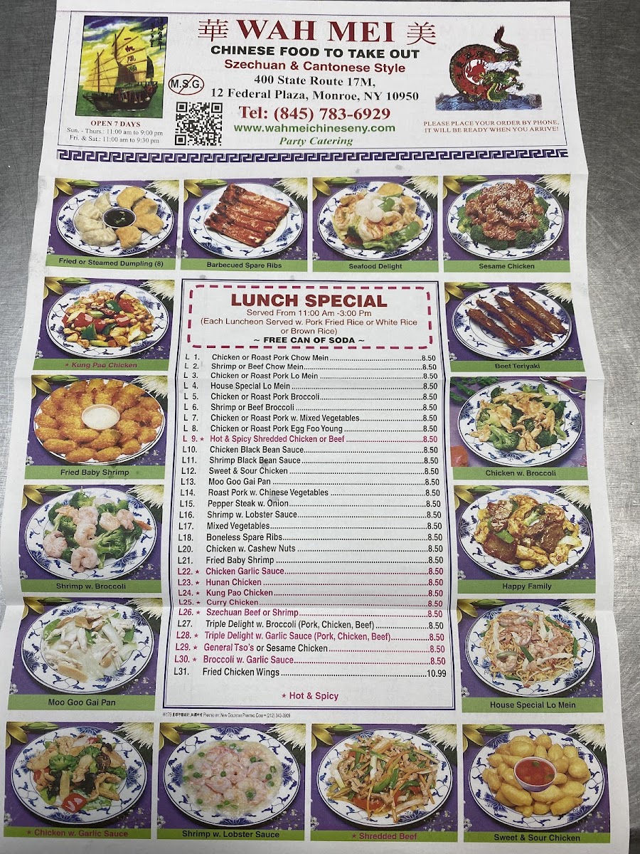 At Wah Mei, the menu offers a delightful selection of Chinese and Asian-inspired dishes, each prepared with the freshest ingredients and flavors. Whether you're in the mood for a savory stir-fry, a satisfying noodle dish, or a comforting bowl of soup, there’s something to satisfy every craving. The Wah Mei Menu features a variety of traditional favorites, alongside chef’s specials that bring a modern twist to classic recipes. Each dish is crafted with care, showcasing a balance of textures and bold flavors, making it the perfect spot for a casual meal or a gathering with friends and family. From crispy appetizers to hearty entrees, you’re sure to find a dish that leaves you wanting more.